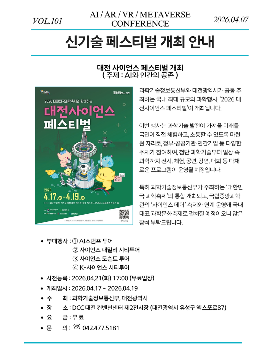 소식 4. 대전 사이언스 페스티벌 개최 ( 주제 : AI와 인간의 공존 )